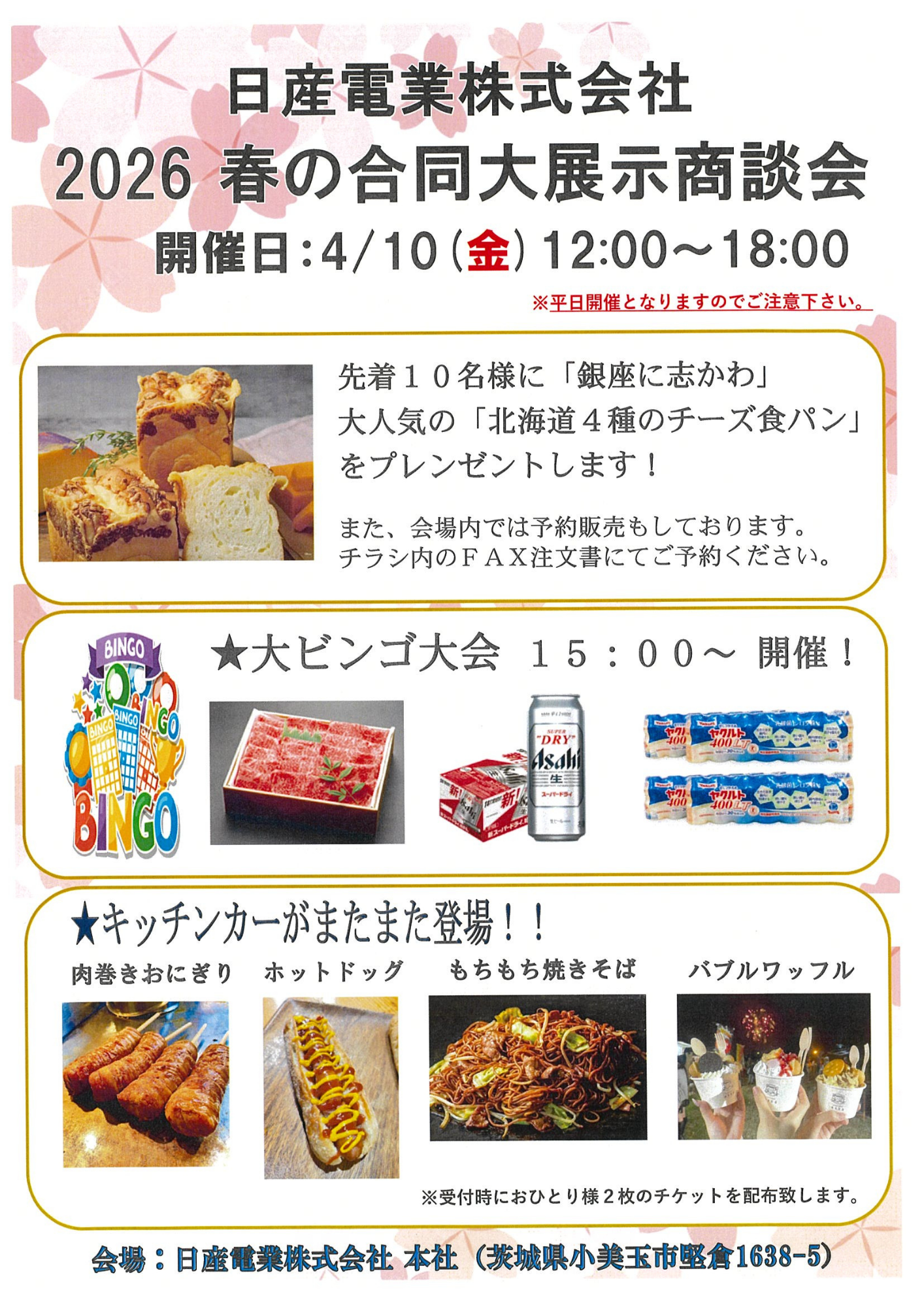 日産電業株式会社 本社会場にて春の合同大展示商談会を開催致します。